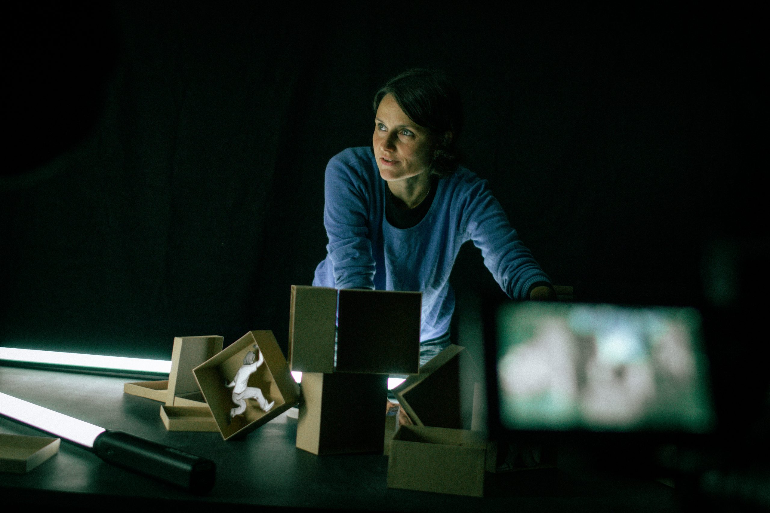 Die Interviews wurden einzeln in einem speziell für das Projekt entwickelten Studiosetup aufgezeichnet. Das schwarz-weiße Design symbolisiert die stark polarisierte Debatte in Deutschland, bei der oft nur Empathie für entweder die palästinensische oder die israelische Perspektive vermittelt wird.